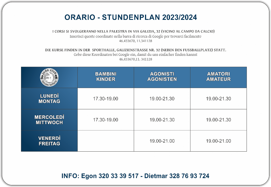 Orari corsi - Zeitplan und Kurse - Judo Club Laives - Leifers A.S.D.
